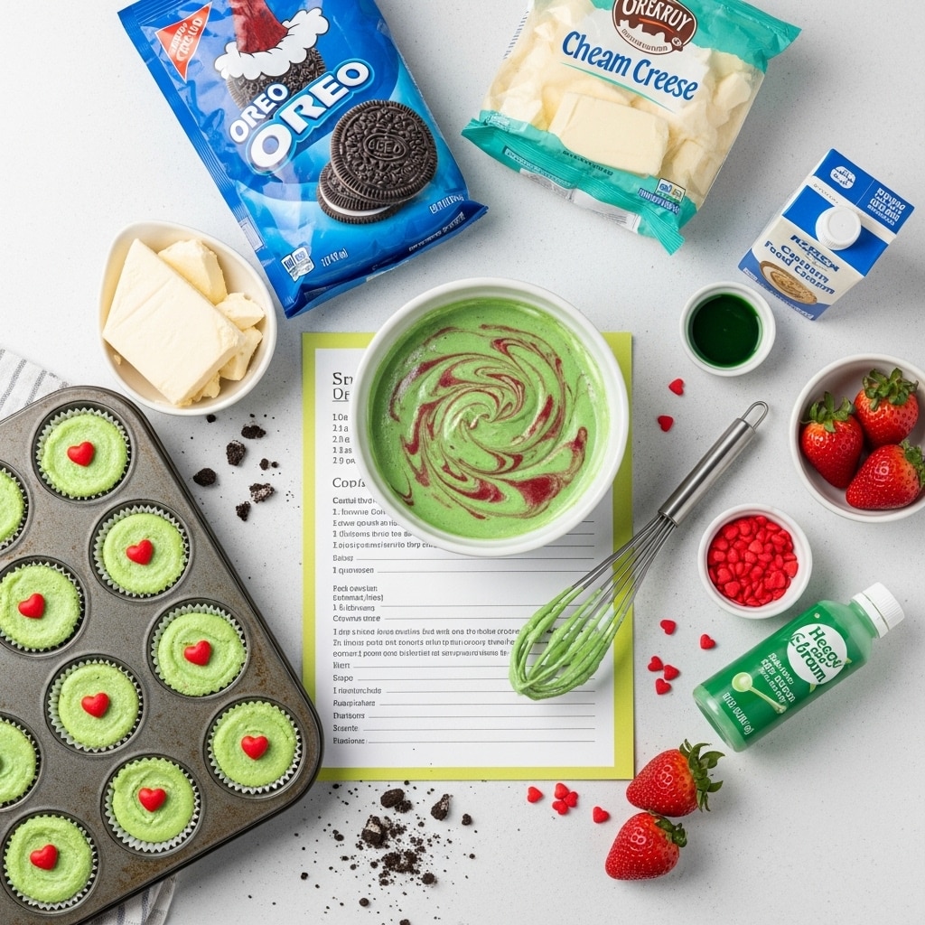 These no-bake Grinch cheesecakes deliver creamy, tangy filling in perfect portion-sized bites with that iconic green color and red heart accent no water bath or cracking worries. They’re make-ahead friendly and travel well for potlucks.